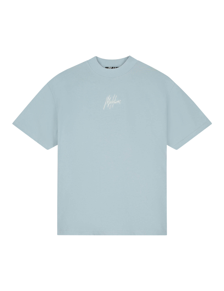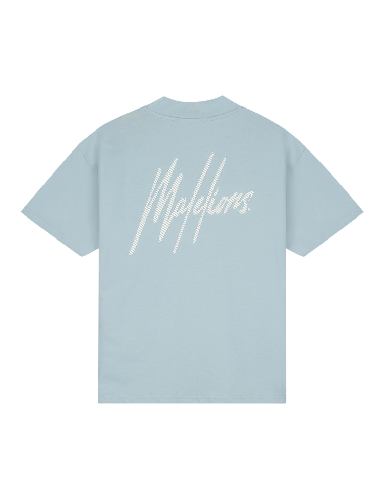 Malelions Oversized Striped Signature T-Shirt - Ice Blue