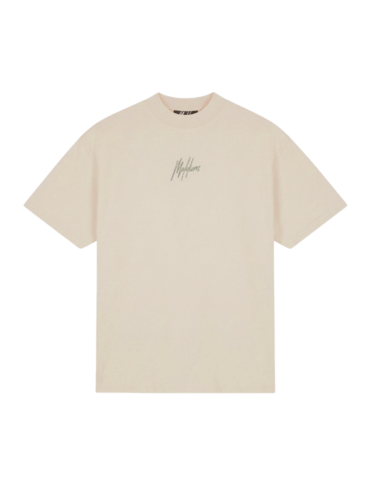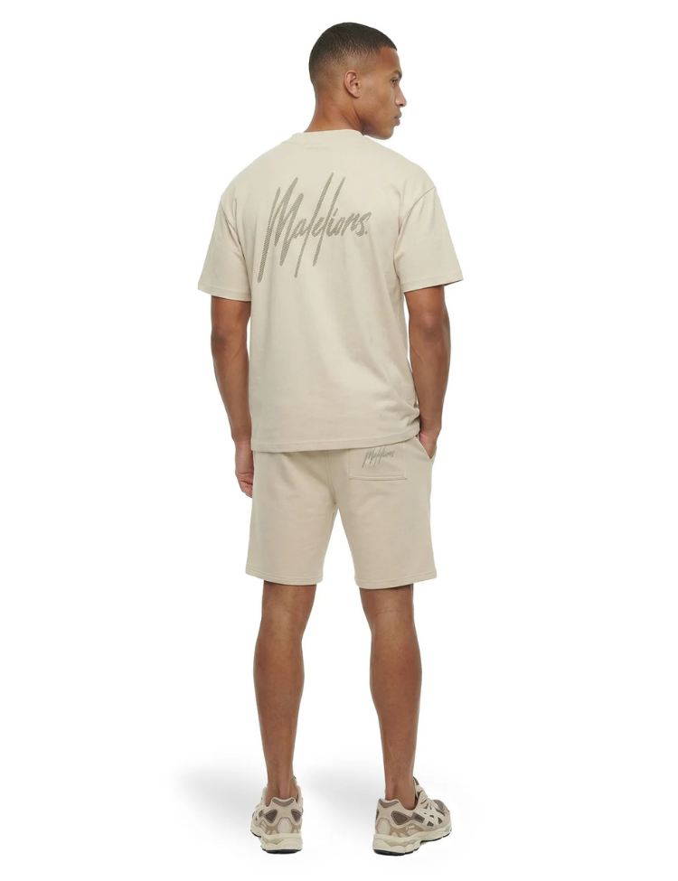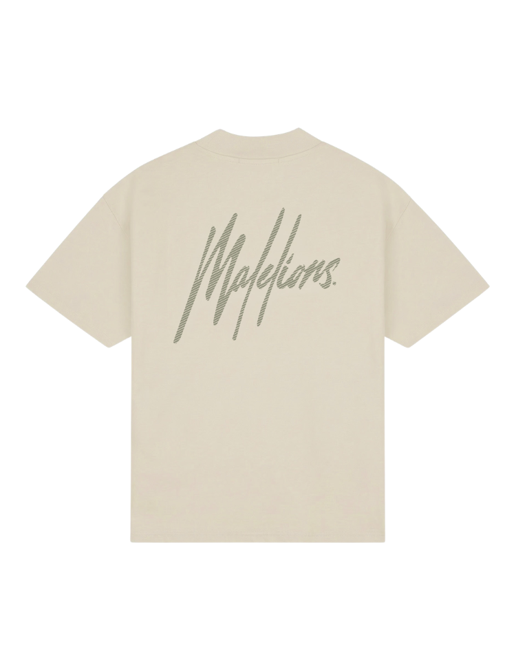 Malelions Oversized Striped Signature T-Shirt - Light Taupe
