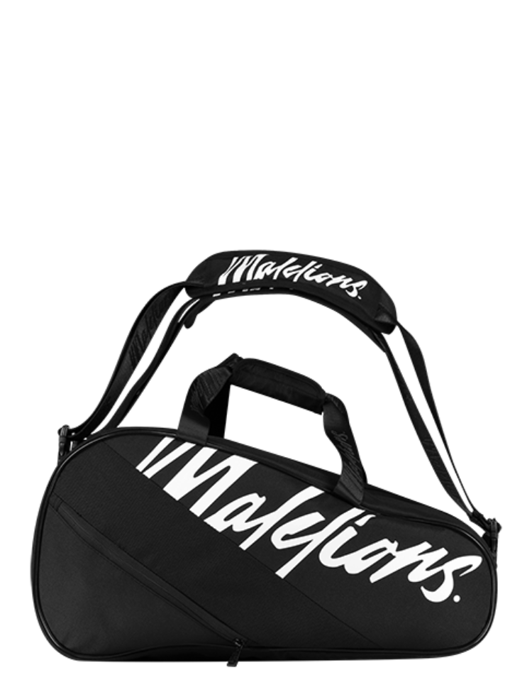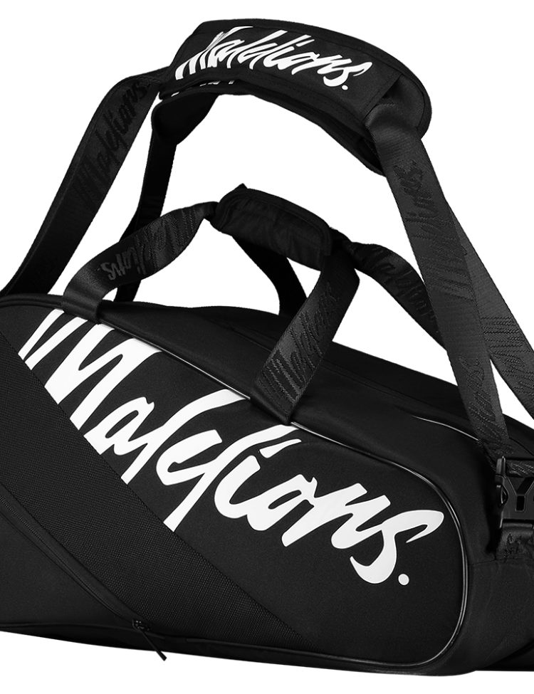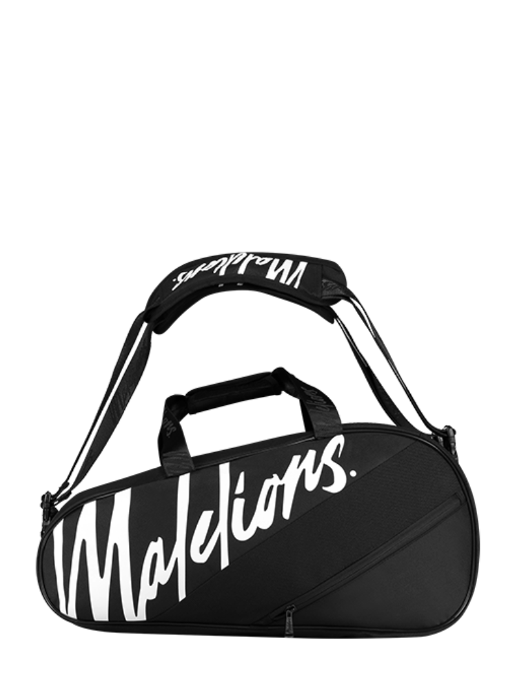 De Malelions Padel Vortex Racket Bag is een grote tas, met een verstelbare schouderband. De tas heeft ook een kort handvat. Op de voorkant is het Malelions logo groot te zien.