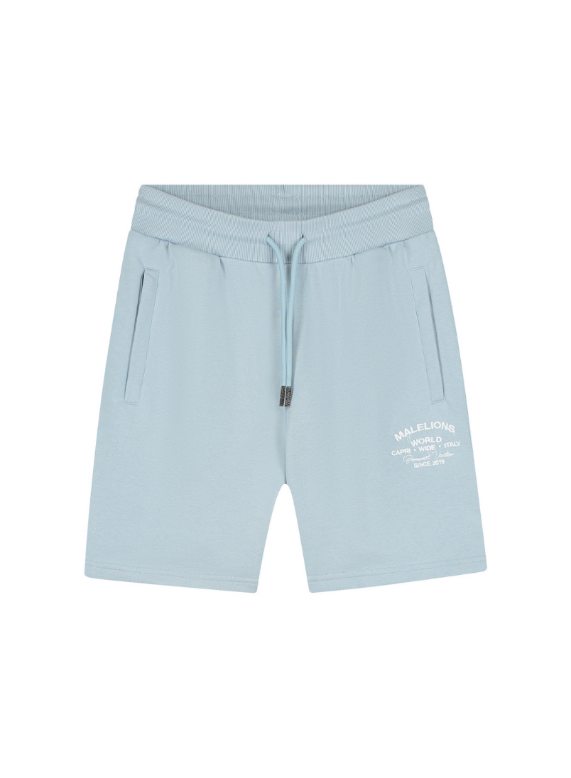 Deze ijsblauwe shorts van Malelions combineren sportieve comfort met een frisse zomerse uitstraling. De elastische tailleband met trekkoord zorgt voor een perfecte pasvorm, terwijl de steekzakken aan de voorzijde praktisch zijn voor je essentials. Op de linkerpijp staat de witte tekstprint "Malelions World Capri Wide Italy Since 2019" die je vakantiegevoel versterkt. Het zachte materiaal voelt comfortabel aan tijdens warme dagen en de rechte snit geeft je bewegingsvrijheid. Een opvallende zak op de achterkant met dezelfde print maakt het design compleet.