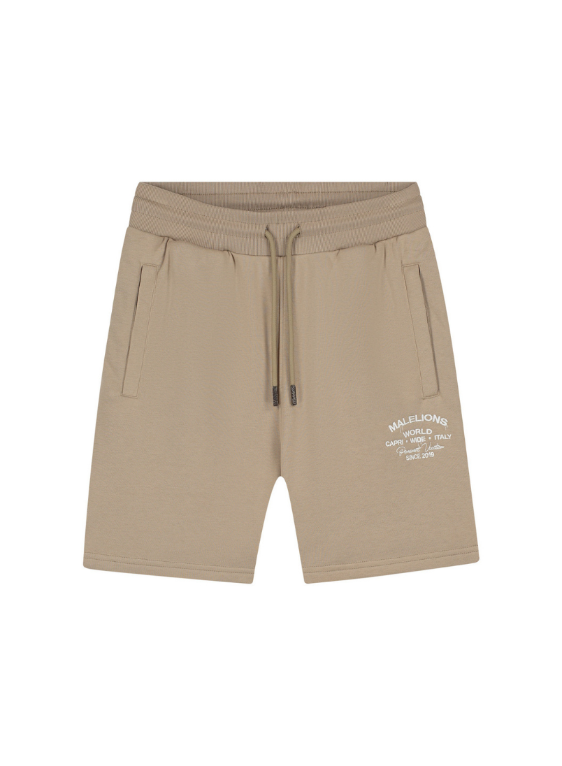 Deze shorts van Malelions combineren sportief comfort met een relaxte uitstraling. De elastische tailleband met trekkoord zorgt voor een perfecte pasvorm, terwijl de steekzakken aan de voorzijde praktisch zijn voor je essentials. Op de linkerpijp staat subtiele tekstbranding met "Malelions World" en "Permanent Vacation Since 2016" die je stijl een exclusieve touch geeft. De sage brown kleur maakt deze korte broek veelzijdig en trendy voor elke zomerse gelegenheid.