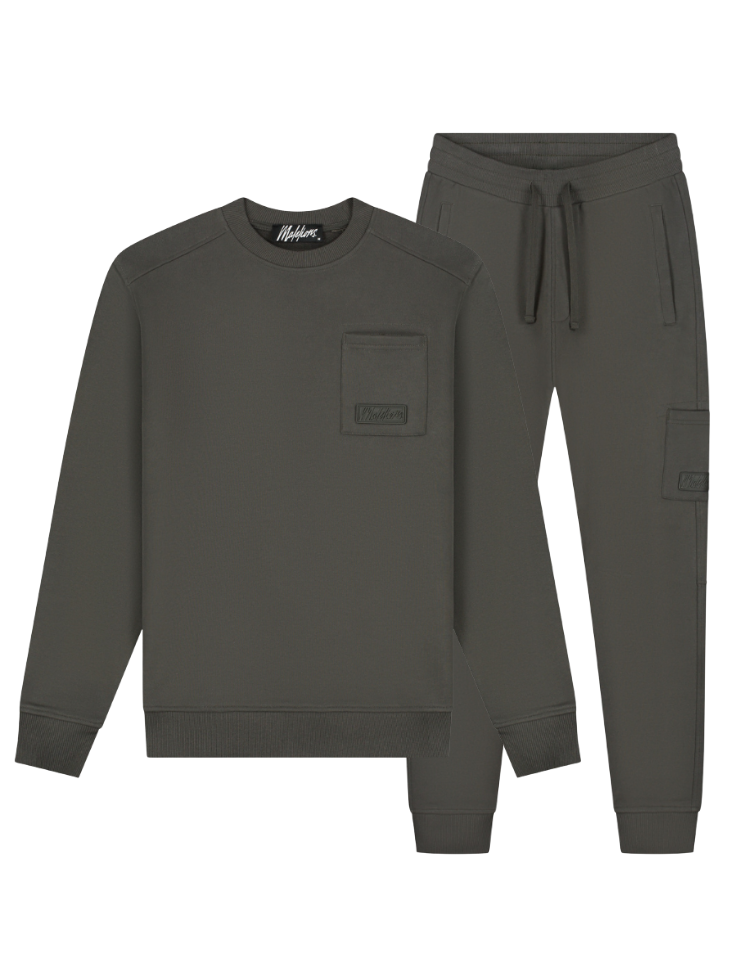 Deze stoere combi-set bestaat uit een sweater met borstzak en bijpassende joggingbroek in een frisse vintage groene kleur. De sweater heeft een ronde hals met geribde boorden, raglanmouwen en een opvallende borstzak met tonal Malelions-label. De joggingbroek beschikt over een elastische tailleband met trekkoord, twee steekzakken en een zijzak op het bovenbeen. Beide items zijn uitgevoerd in zachte sweatstof die je de hele dag comfortabel draagt. Perfect voor je sportieve streetwear look waarbij stijl en comfort samenkomen.