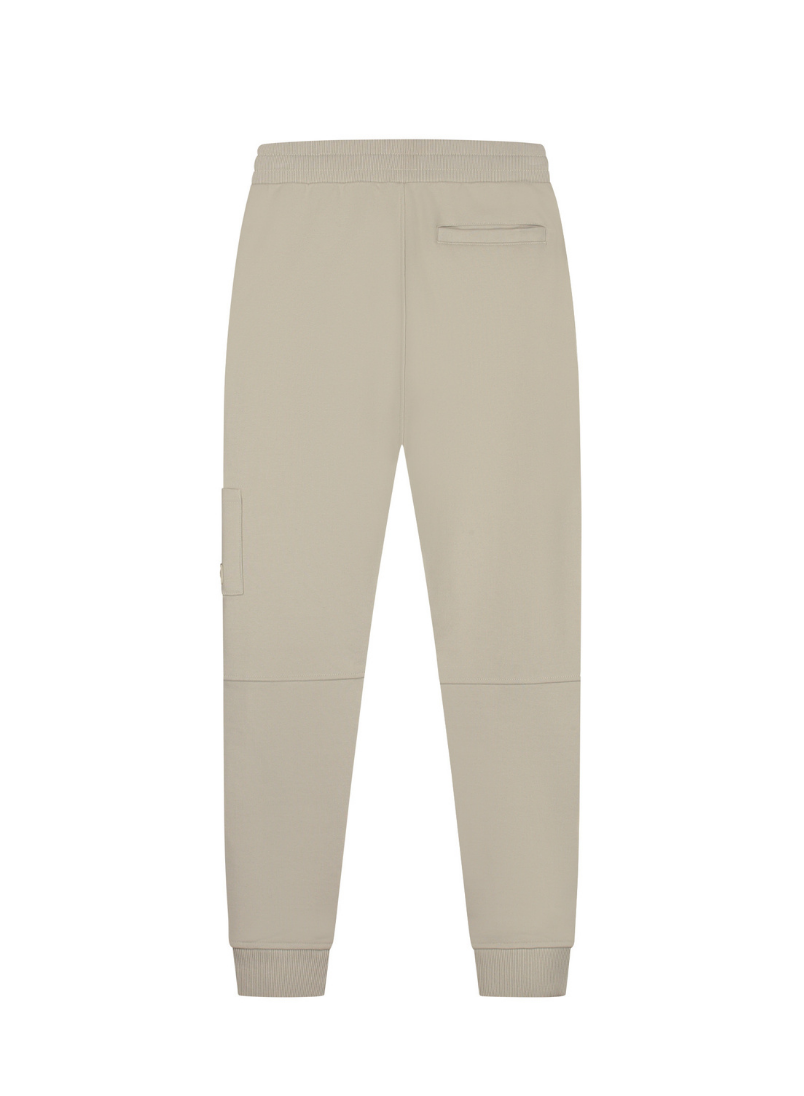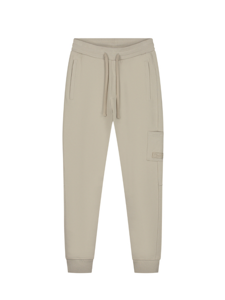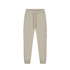Deze licht taupe joggingbroek combineert sportieve comfort met streetwear style. De elastische tailleband met trekkoord zorgt voor een perfecte pasvorm. Opvallend zijn de cargo-zakken aan de zijkant met Malelions-branding in reliëf. De broek heeft een taps toelopend model met elastische boordjes aan de enkels. Extra steekzakken aan de voorzijde en een achterzak maken deze sweatpants praktisch voor dagelijks gebruik. Het zachte materiaal voelt comfortabel aan tijdens je relaxte dagen of sportieve activiteiten.