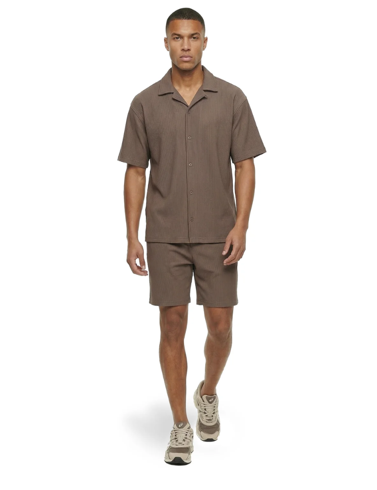 Bruin Ribbed Camp Collar Shirt van Malelions