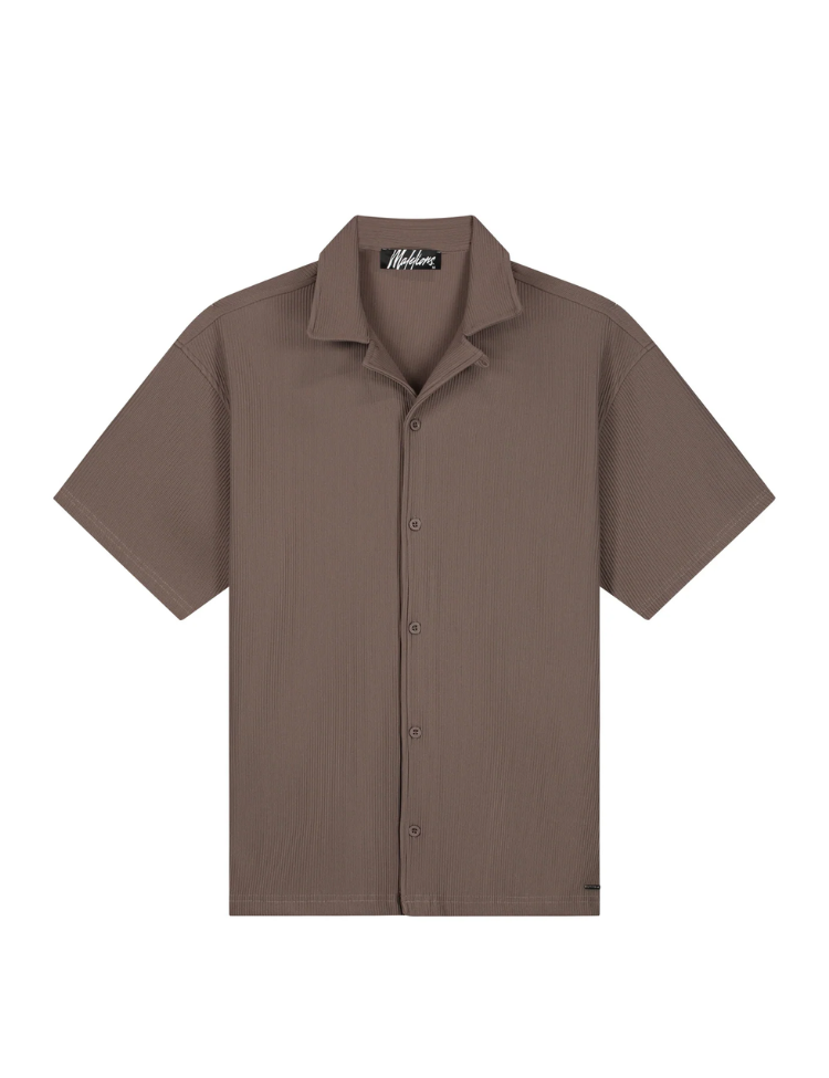 Malelions Ribbed Camp Collar Shirt - Brown
