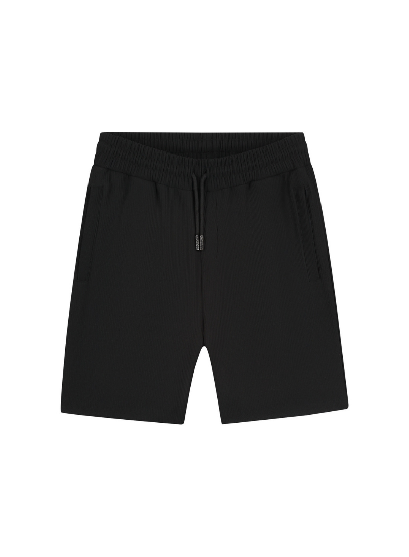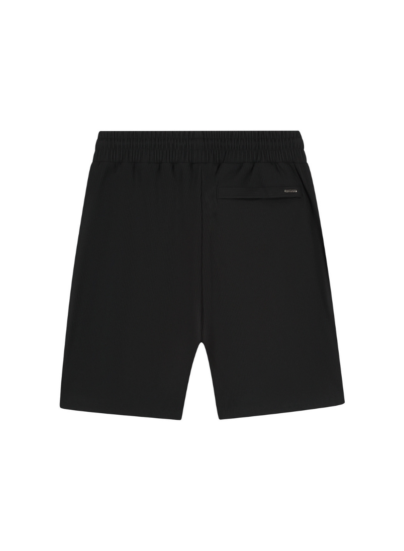 Deze zwarte shorts van Malelions combineren sportief comfort met een stijlvolle twist. De geribbelde structuur geeft textuur aan het design, terwijl de elastische tailleband met trekkoord zorgt voor de perfecte pasvorm. Steekzakken aan de zijkanten bieden praktische opbergruimte. Een achterzak met subtiele merkdetails completeert het geheel. De knielengte short is ideaal voor je casual streetwear look en voelt comfortabel aan tijdens warme dagen.