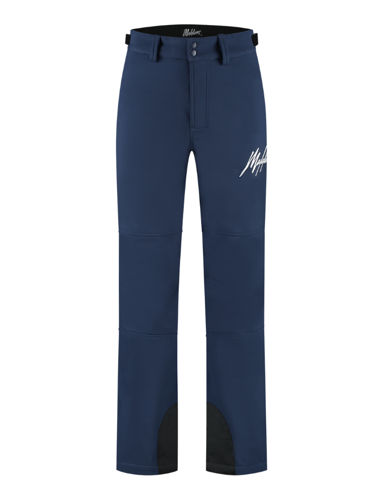 Deze technische skibroek van Malelions combineert functionaliteit met stoere styling. Het navy blauwe design wordt geaccentueerd door de kenmerkende Malelions-branding in wit langs het rechterbeen. De broek heeft een praktische knoop- en ritssluiting voor stevige pasvorm tijdens actieve winterdagen. Twee steekzakken aan de voorkant bieden ruimte voor je essentials. De reinforced kniepanelen en zwarte snowcatchers onderaan zorgen voor extra bescherming op de piste. De tailleband met riemlusjes maakt het mogelijk je favoriete riem te dragen.