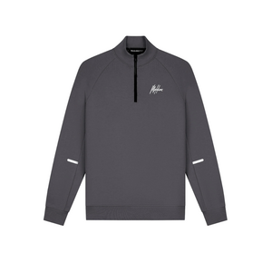 Deze sportieve halfzip sweater in antraciet combineert comfort met een moderne uitstraling. Het kledingstuk heeft een opstaande kraag met halve ritssluiting voor verstelbare ventilatie. Raglanmouwen zorgen voor optimale bewegingsvrijheid tijdens je activiteiten. Witte reflecterende strepen op de ellebogen geven je outfit een sportief accent. Het Malelions logo op de linkerborst is subtiel geplaatst. De geribde boorden bij de mouwen en zoom zorgen voor een goede pasvorm die je silhouet mooi volgt.