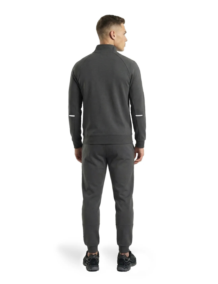De antracietgrijze sweater combineert perfect met de bijpassende joggingbroek voor een complete trainingslook. Het monochrome sportpakket geeft je een strakke, atletische uitstraling. De halfzip constructie maakt het mogelijk om je outfit aan te passen aan verschillende temperaturen. Malelions staat bekend om sportieve designs die je zowel tijdens het sporten als in je vrije tijd kunt dragen.