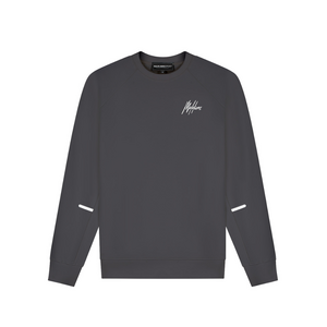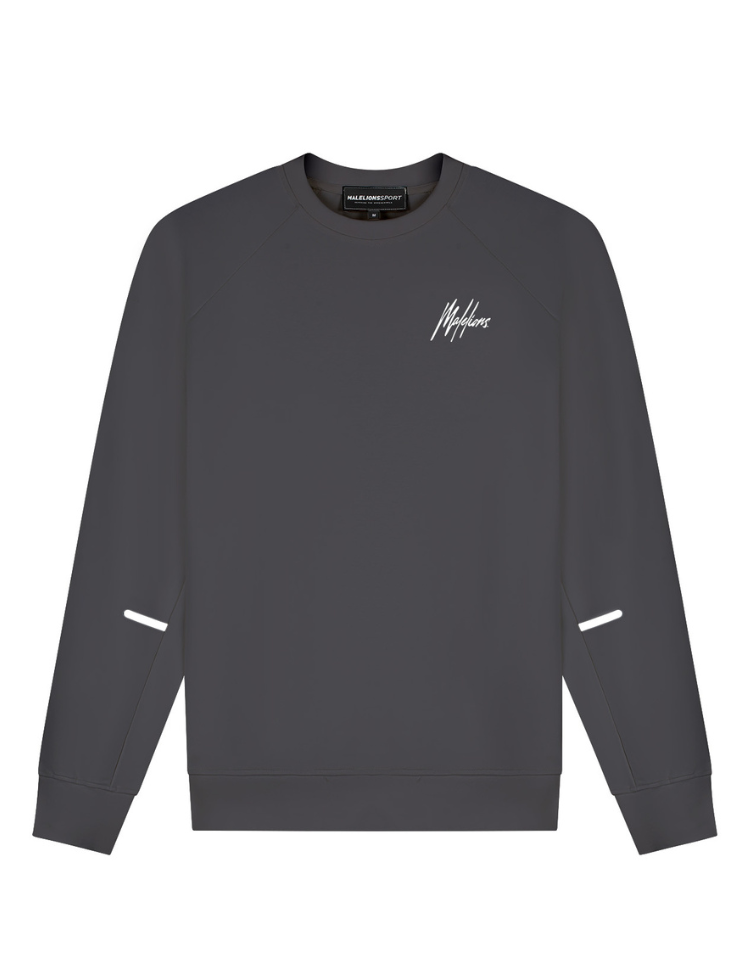 Deze antracietkleurige sweater van Malelions combineert sportieve elementen met streetwear stijl. Het kledingstuk heeft een ronde hals en lange mouwen met opvallende witte reflecterende strepen bij de ellebogen. Op de linkerborstzijde staat het kenmerkende Malelions logo in wit gedrukt. De trui heeft een relaxte pasvorm die je bewegingsvrijheid geeft. Het zachte materiaal voelt comfortabel aan tijdens het dragen. Deze pullover is geschikt voor dagelijks gebruik en sportieve activiteiten. De neutrale kleur maakt het item veelzijdig te combineren in je garderobe.