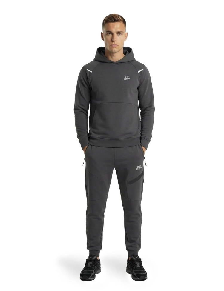 De antracietgrijze trainingsbroek van Malelions vormt een complete tracksuit met de bijpassende hoodie. Deze monochrome combinatie creëert een stoere, sportieve look die je zowel in de sportschool als op straat kunt dragen.