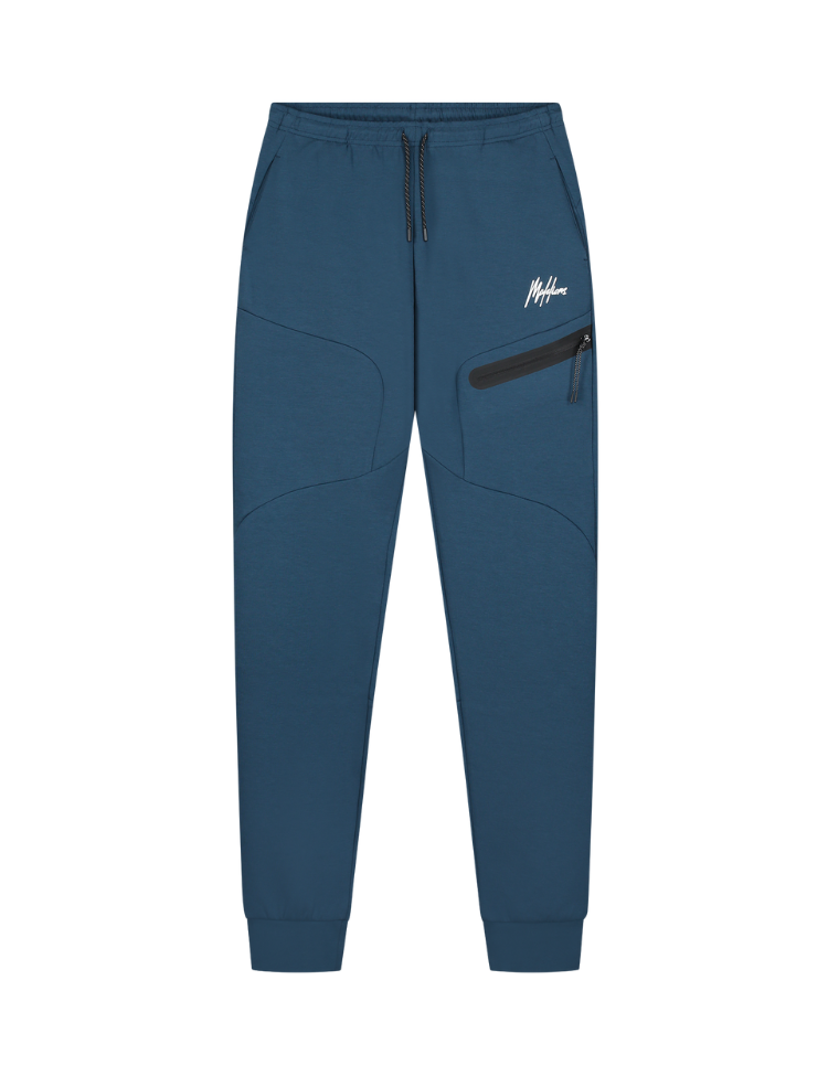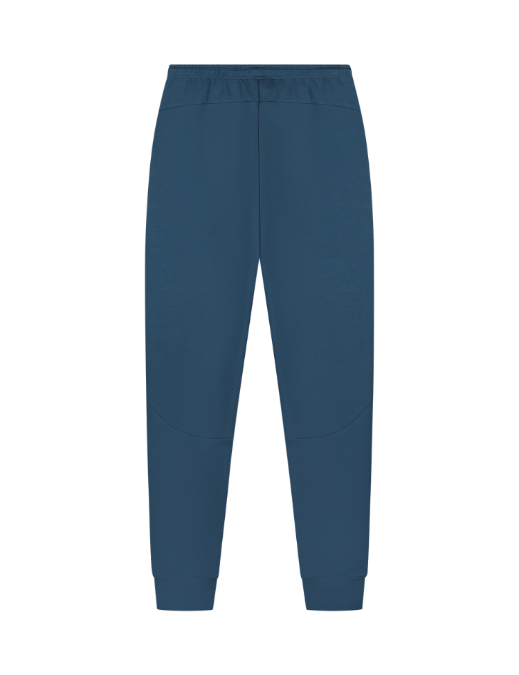 Het design is voorzien van strategisch geplaatste panelen en een opvallende ritssluiting op de dij, wat niet alleen zorgt voor een stoere, technische look maar ook extra functionaliteit toevoegt. De elastische tailleband met verstelbaar trekkoord garandeert een perfecte pasvorm, terwijl de geribde boorden aan de enkels zorgen dat de broek mooi aansluit.