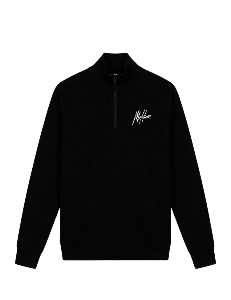 Malelions Sport Logo Raglan Sweater met Halve Rits - Zwart