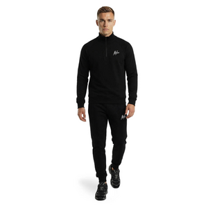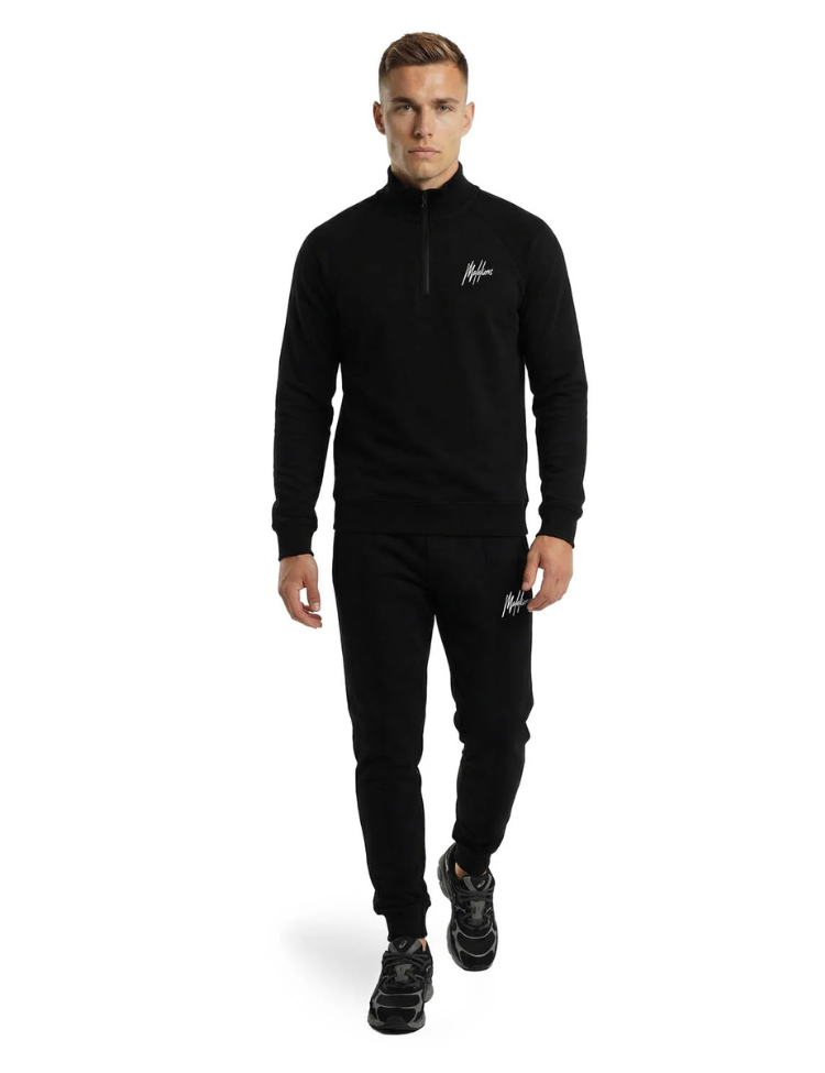 Deze zwarte sweater van Malelions combineert sportief comfort met stoere streetwear vibes. Het raglan design zorgt voor extra bewegingsvrijheid, terwijl de halve ritssluiting je de controle geeft over ventilatie en styling. De opstaande kraag beschermt tegen wind en geeft het truitje een cleane afwerking. Op de borst pronkt het kenmerkende Malelions logo in subtiele witte letters. De ribgebreide boorden bij de mouwen en zoom houden alles strak op z'n plek. Perfect voor je sportieve momenten of als layering piece in je dagelijkse outfit.