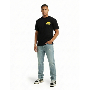 De straight fit jeans van Malelions past perfect bij het zwarte T-shirt met grafische print voor een complete streetwear outfit. De lichtblauwe tint contrasteert mooi met donkere bovenstukken en zorgt voor balans in je look.