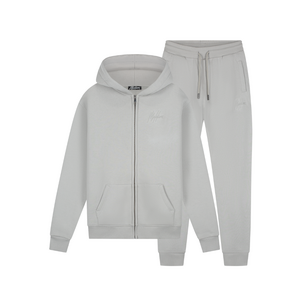 Dit Pearl Grey trainingspak bestaat uit een hoodie met ritssluiting en bijpassende joggingbroek. De hoodie heeft een capuchon, doorlopende ritssluiting en steekzakken aan de voorzijde. Op de borst staat het signature Malelions script geborduurd. De joggingbroek heeft een elastische tailleband met trekkoord en ribboorden bij de enkels. Beide delen zijn uitgevoerd in een zachte katoenmix die perfect aansluit op je lichaam voor optimaal draagcomfort tijdens sportieve en casual momenten.