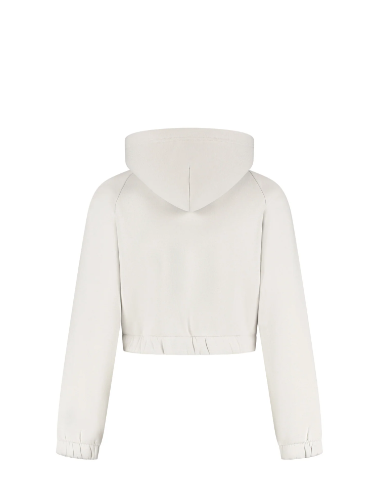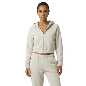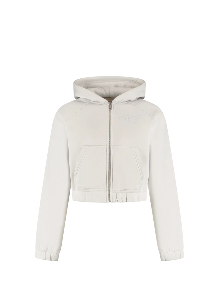 Deze cropped hoodie in lichtgrijs combineert sportieve vibes met een vrouwelijke twist. De verkorte pasvorm met elastische boord accentueert je taille, terwijl de doorlopende ritssluiting zorgt voor veelzijdigheid in styling. Raglanmouwen en een comfortabele capuchon geven deze zip-up hoodie een relaxte uitstraling. De elastische manchetten en zoom zorgen voor een perfecte aansluiting. Het subtiele emblem op de borst maakt het design compleet zonder op te vallen.