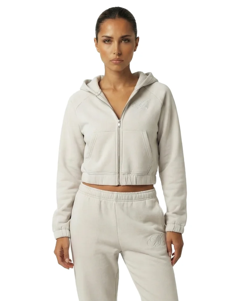 Malelions Women Lichtgrijze Cropped Emblem Zip Hoodie