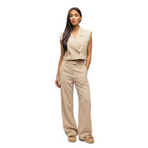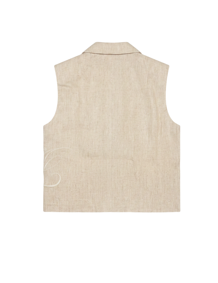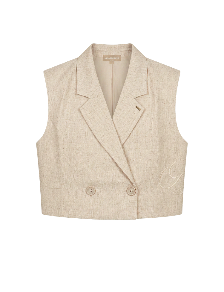 Malelions Women Cropped Linen Emblem Gilet - Beige