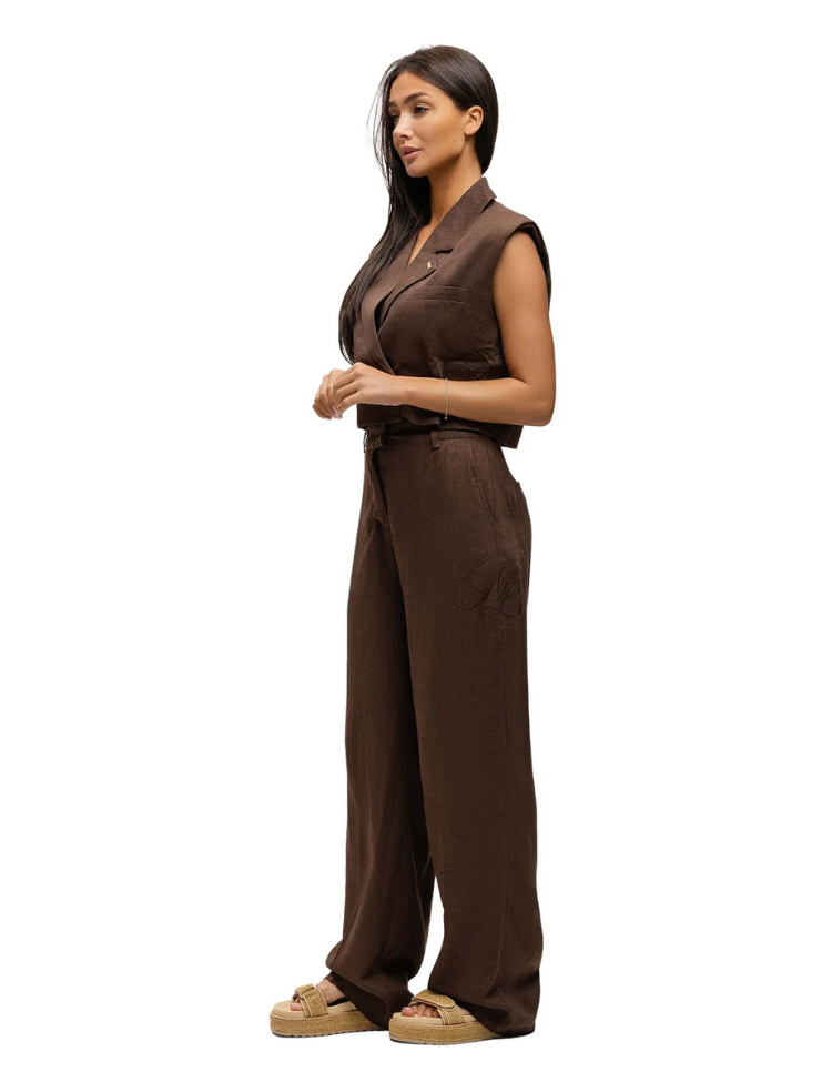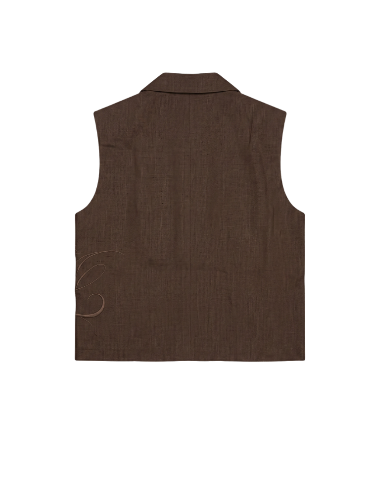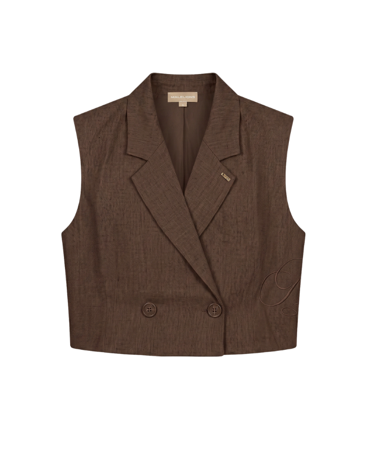 Malelions Women Cropped Linen Emblem Gilet - Espresso