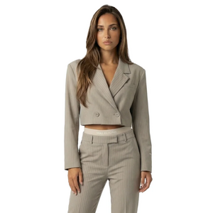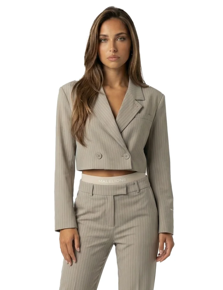 Malelions Women Sand Cropped Krijtstreep Blazer