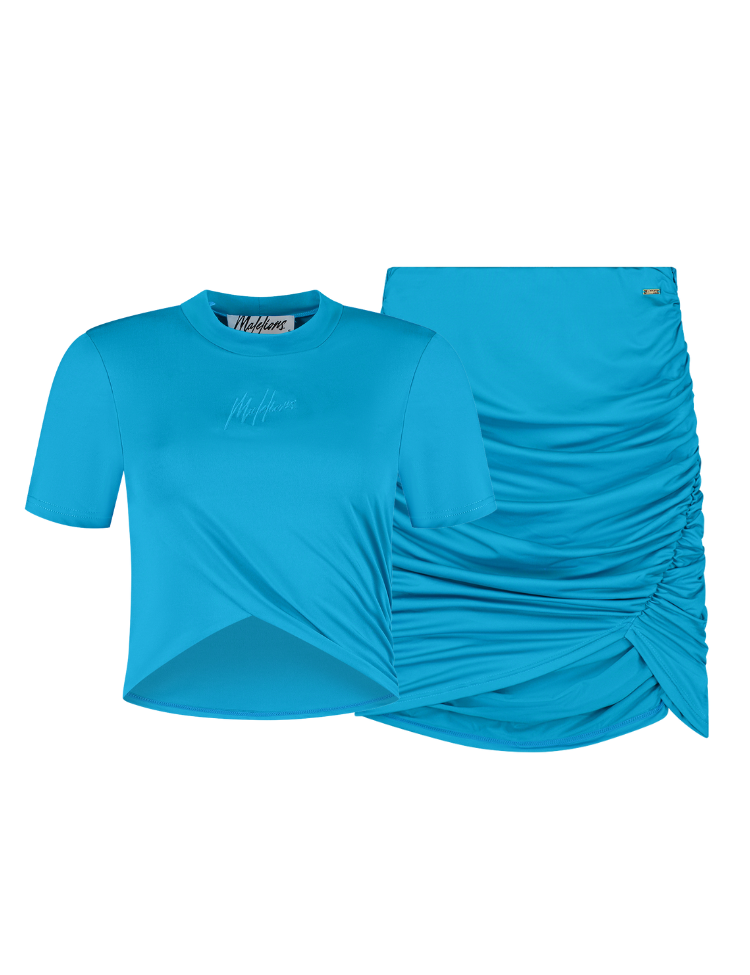 De Malelions Women Drape Combi-set is dé zomerse must-have. De getailleerde top met asymmetrisch drapedetail en de flatterende rok met elastische tailleband zorgen samen voor een vrouwelijke en elegante look. Gemaakt van een zachte stretchstof voor optimaal comfort. Draag als set of mix & match met denim, blazer of blouse voor eindeloze combinaties.