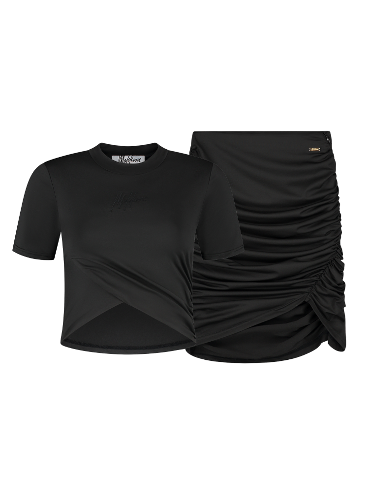 De Malelions Women Drape Combi-set is dé zomerse must-have. De getailleerde top met asymmetrisch drapedetail en de flatterende rok met elastische tailleband zorgen samen voor een vrouwelijke en elegante look. Gemaakt van een zachte stretchstof voor optimaal comfort. Draag als set of mix & match met denim, blazer of blouse voor eindeloze combinaties.