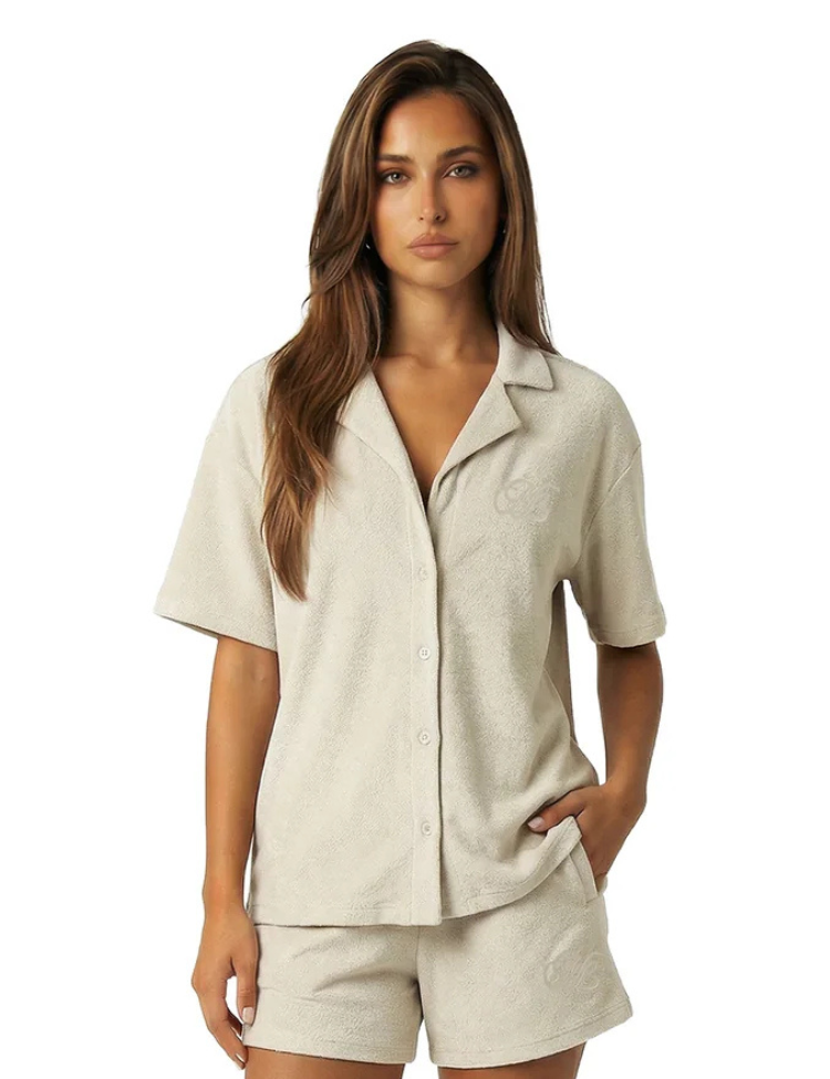 Malelions Women Emblem Bouclé Shirt - Sand