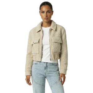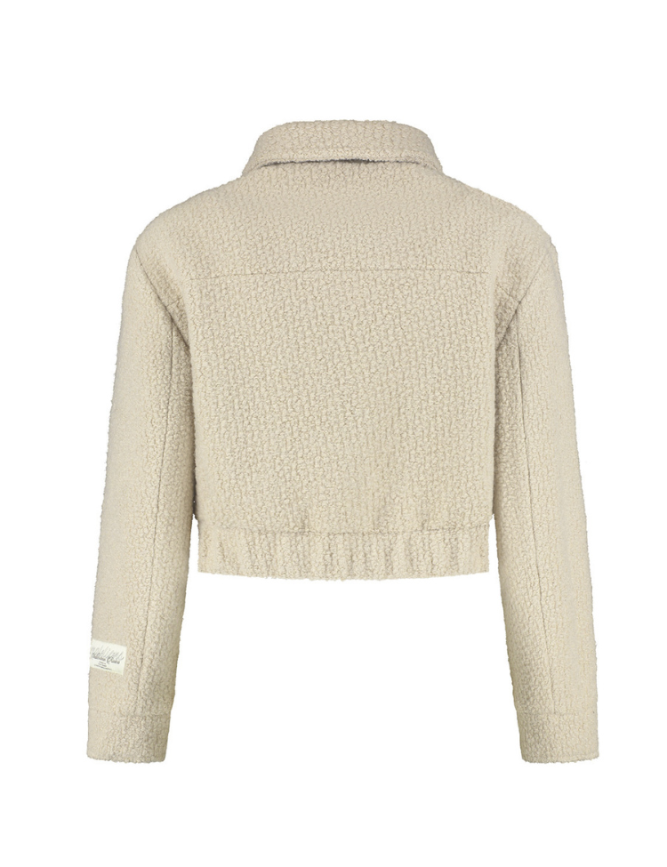 Deze cropped bouclé jacket van Malelions combineert zachte textuur met een stoere look. Het zandkleurige jack heeft een doorlopende ritssluiting en klassieke kraag. Twee borstzakken met drukknopen geven je outfit extra karakter. De elastische boord aan de onderkant zorgt voor een perfecte pasvorm, terwijl het bouclé materiaal je warm houdt. Het korte model reikt tot je taille en heeft lange mouwen met elastische boorden. Subtiele Malelions branding op de borst maakt de streetwear vibe compleet.