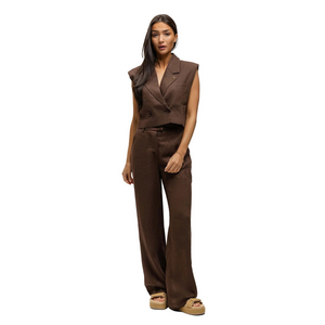 Malelions Women Linen Emblem Pantalon - Espresso