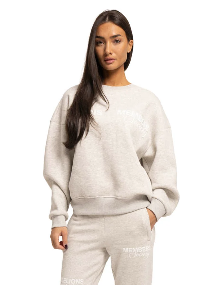 Deze grijze gemêleerde sweater van Malelions combineert comfort met een sportieve uitstraling. Het zachte sweatshirt heeft een ronde hals en lange mouwen met geribde boorden. Op de borst pronkt "MALELIONS Limited" aan de linkerzijde en "MEMBERS Society" rechts in witte tekstprint. De relaxte pasvorm en het melange-effect in de stof zorgen voor een moderne streetwear look. Perfect voor wie houdt van casual luxe met een statement.