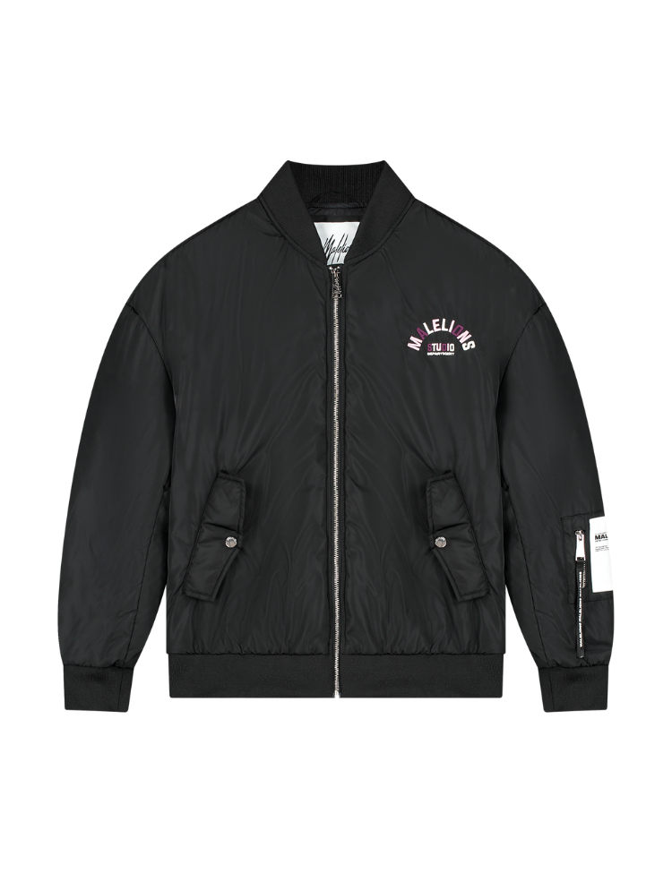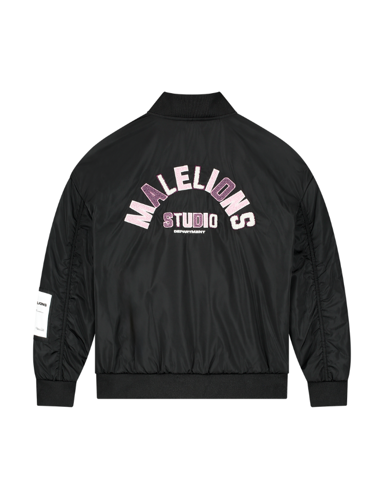 Malelions Women Oversized Label Bomber Jacket - Deep Black