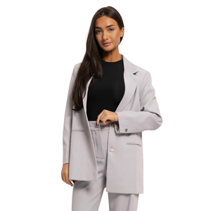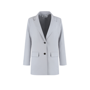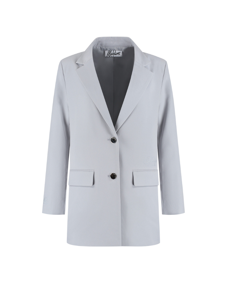 Deze oversized blazer heeft een relaxte pasvorm met een verlengde snit. Het lichtgrijze colbert heeft klassieke revers en sluit met twee donkere knopen aan de voorzijde. Opvallend detail is de "Malelions" tekst in reliëf op de achterzijde. De lange mouwen hebben knoopdetails bij de polsen. Twee opgestikte zakken met klep aan de voorkant geven de blazer een functionele touch. Deze dames blazer combineert een stoere streetwear vibe met klassieke blazerelementen voor een eigentijdse look.