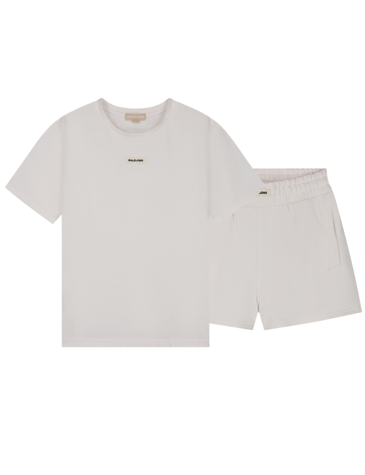 Deze zachte roze tweedelige set bestaat uit een comfortabel T-shirt en bijpassende shorts. Het shirt heeft een relaxte pasvorm met ronde hals en korte mouwen. Centraal op de borst staat de kenmerkende Malelions branding in contrasterende letters. De bijbehorende shorts kennen een elastische tailleband voor optimaal draagcomfort. Het zachte materiaal voelt soepel aan tegen je huid. De subtiele roze tint maakt dit sportieve ensemble perfect voor je casual garderobe.