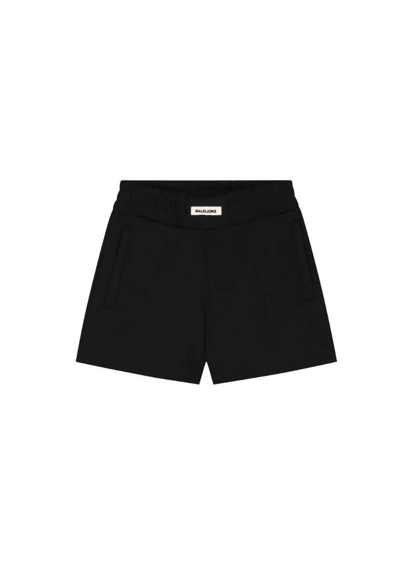 Deze zwarte damesshorts van Malelions hebben een sportieve uitstraling met elastische tailleband voor optimaal draagcomfort. Het opvallende rechthoekige patch logo met merknaam siert de achterkant van de tailleband. De shorts zijn uitgevoerd in een relaxte pasvorm die je bewegingsvrijheid geeft. Het gladde materiaal zorgt voor een frisse, moderne look die je de hele dag comfortabel draagt. Steekzakken aan beide zijden maken deze sportieve shorts extra praktisch.