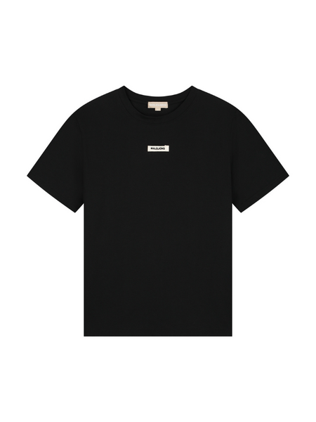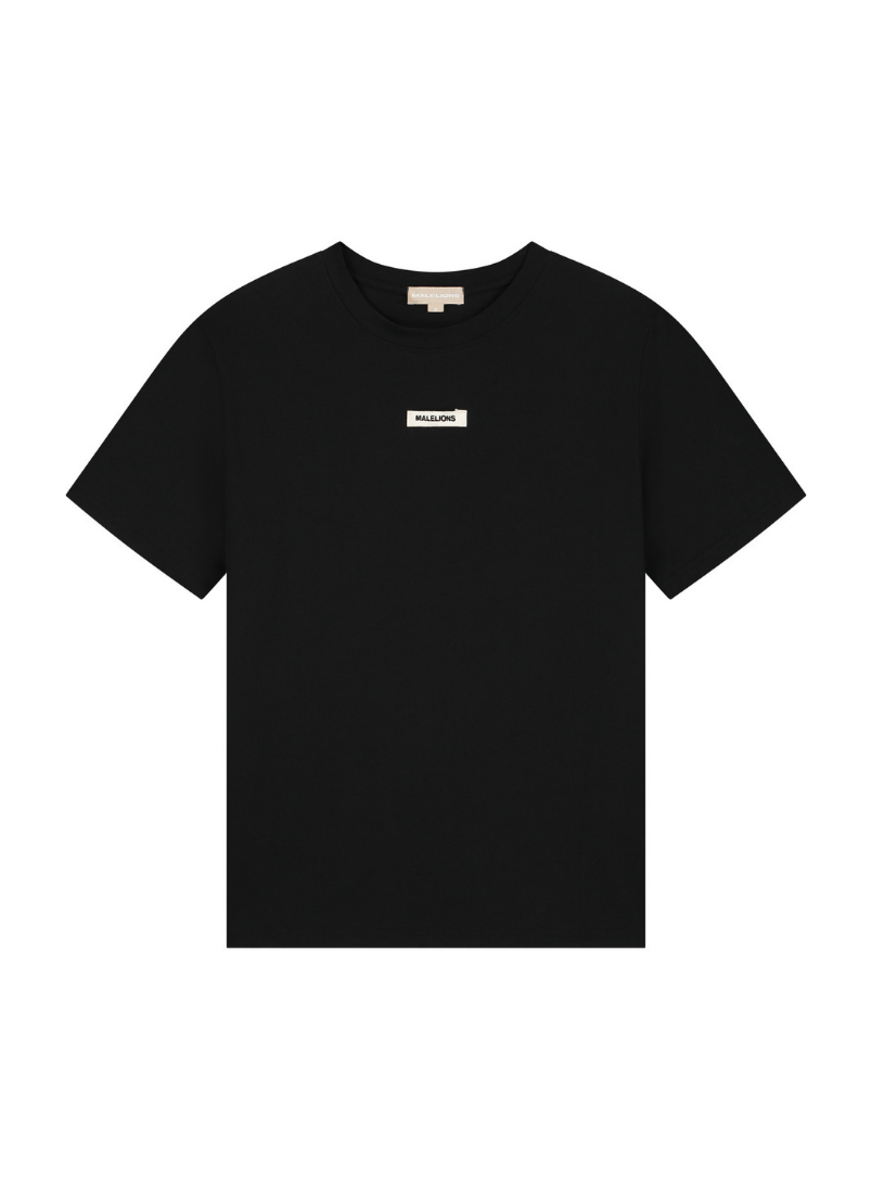 Dit zwarte dames T-shirt kenmerkt zich door de ronde halslijn en korte mouwen. Op de borst zie je een opvallend wit patch logo met de tekst "MALELIONS" in rechthoekig formaat. Het shirt heeft een relaxte pasvorm die je veel bewegingsvrijheid geeft. De zachte stof voelt comfortabel aan op je huid en is ideaal voor dagelijks gebruik. Door het minimalistische design met subtiele branding combineer je dit basic item eenvoudig met verschillende kledingstukken uit je garderobe.