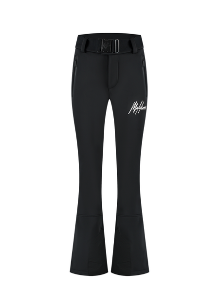 De zwarte skibroek van Malelions creëert een slanke silhouet dankzij de getailleerde pasvorm die uitloopt in flared pijpen. Perfect te combineren met technische skijassen voor complete bescherming tegen de elementen.