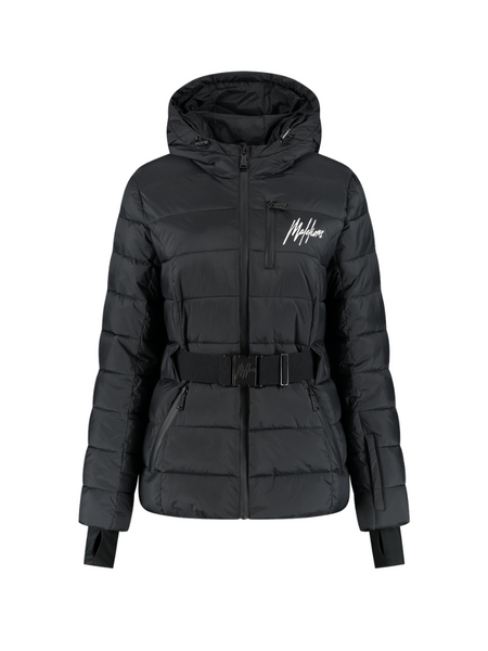 Deze zwarte skibroek voor dames combineert technische prestaties met stijlvolle details. De flared pijpen geven je bewegingsvrijheid op de piste, terwijl de ritszakken je essentials veilig opbergen. Het Malelions script logo siert subtiel de linkerpijp. De tailleband met riemgesp zorgt voor een perfecte pasvorm tijdens al je wintersportavonturen. Ritsen aan de onderkant van de pijpen maken het makkelijk om je skischoenen aan te trekken.