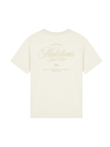 Kleur: Cream Design: Cursieve "Malelions Social Club" opdruk op de borst en rug, met aanvullende tekst op de rug Artikelnummer: MWC30026023