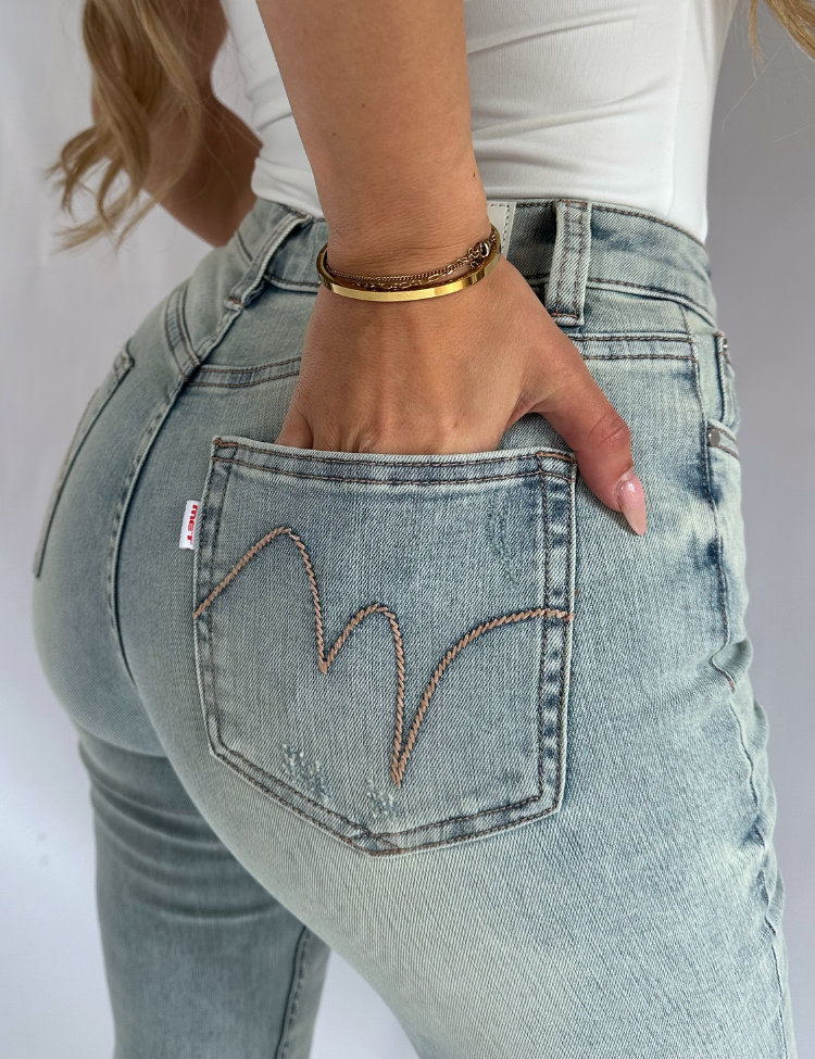 De MET Jeans Roxanne: een slim-fit jeans die jouw silhouet perfect accentueert en moeiteloos combineert met elke look. Deze lichtblauwe jeans is uitgevoerd met een damaged finish en voorzien van het kenmerkende MET-logo. Draag de jeans casual met een tanktop en sneakers of ga voor een elegante twist met hakken en een blazer. Met deze jeans kan je alle kanten op!