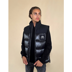 Het Moose Knuckles Victory Peak Vest voor heren is een premium gewatteerd bodywarmer die stijl en functionaliteit naadloos combineert. Dit mouwloze jack is vervaardigd uit glanzend waterafstotend nylon en heeft een sportieve, moderne uitstraling. De voering met dons biedt optimale warmte-isolatie, ideaal voor koelere dagen zonder in te leveren op comfort. De Victory Peak heeft een hoge kraag, een ritssluiting over de volledige lengte en praktische zijzakken met rits. Op de borst prijkt het kenmerkende Moose Knuckles-logo in een contrasterend vlak, wat het vest een stoere urban look geeft. Verkrijgbaar in zowel zwart als beige, een perfecte layering piece voor elk seizoen.