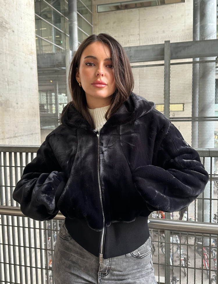De Moose Knuckles Rose De Lima Bunny is dé ultieme combinatie van luxe en streetwear. Dit korte jack is gemaakt van premium faux fur en afgewerkt met een zachte, glanzende structuur die direct een high-fashion uitstraling geeft. Dankzij de oversized pasvorm, comfortabele capuchon en elastische tailleboord is de jas niet alleen stijlvol, maar ook heerlijk draagbaar. Het minimalistische design met rits sluit perfect aan bij de Moose Knuckles-signatuur: urban, stoer en verfijnd. Ideaal om zowel casual met jeans als chic over een jurk te dragen – een echte statement piece voor het seizoen. Verkrijgbaar in meerdere kleuren.