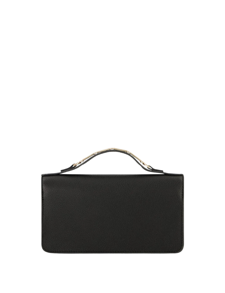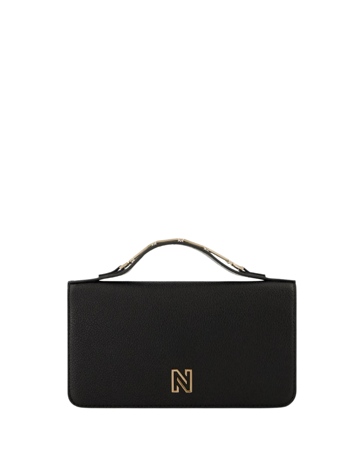 De Nikkie Abby Chain Clutch in Black is hét accessoire dat je outfit direct een upgrade geeft. Deze compacte clutch straalt luxe uit met haar strakke design, zwarte kleur en het iconische gouden N-logo. De clutch is voorzien van een elegant handvat met gouden chain details en is ook crossbody te dragen dankzij de afneembare schouderband. Perfect voor een avondje uit of een chique event.