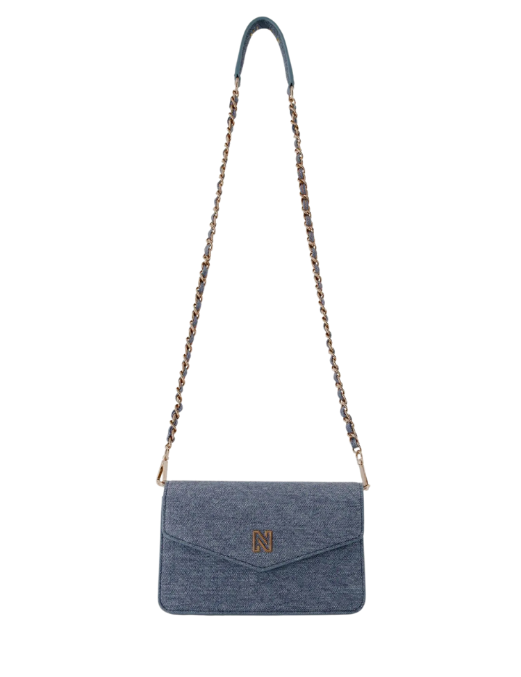 De Nikkie Daxing Shoulderbag in Light Blue is een trendy toevoeging aan je denim-look. De tas is uitgevoerd in lichtblauw denim met een chique goudkleurige chainstrap, en afgewerkt met het herkenbare N-logo op de flap. Draag ‘m crossbody of over je schouder – ideaal voor een dagje shoppen of een night out.