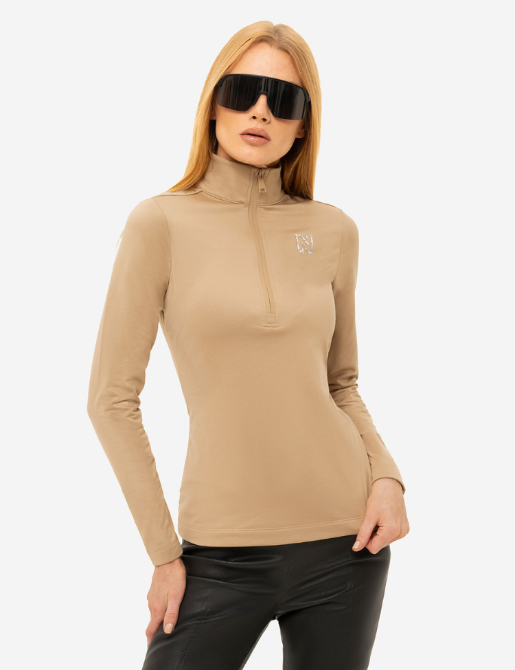 De NIKKIE Gumeko Ski Pully combineert sportieve elegantie met praktische functionaliteit. Deze stijlvolle pully met halve rits is ideaal voor koude dagen op of buiten de piste. Dankzij het rekbare en ademende materiaal biedt de trui optimale bewegingsvrijheid en comfort, terwijl het subtiele glanzende N-logo met kristallen afwerking zorgt voor een luxe, vrouwelijke touch.