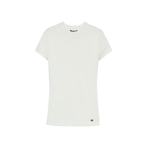 Deze witte top van Nikkie kenmerkt zich door een verfijnd goudkleurig logo-detail onderaan de zoom. Het shirt heeft een klassieke ronde halslijn en korte mouwen die net over de schouders vallen. De regular fit zorgt voor een comfortabele pasvorm die mooi aansluit zonder te knellen. Het gladde materiaal heeft een zachte uitstraling en behoudt zijn vorm gedurende de dag. De subtiele "N" in goud geeft deze basic top een luxe accent.