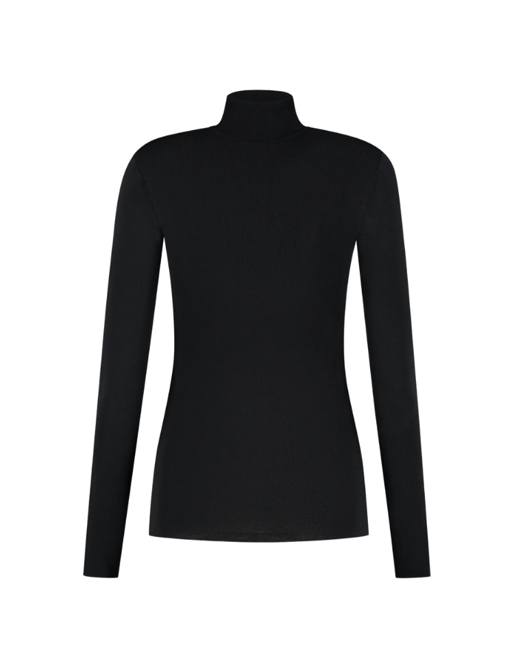 De Jolie Turtle Top van NIKKIE in tijdloos zwart is hét item dat niet mag ontbreken in je garderobe. Deze fijngebreide coltop heeft een aansluitende pasvorm die je silhouet prachtig volgt en is gemaakt van een comfortabele stretchstof met subtiele ribstructuur. De hoge col zorgt voor een elegante, slanke look – perfect als layer of als statement piece.