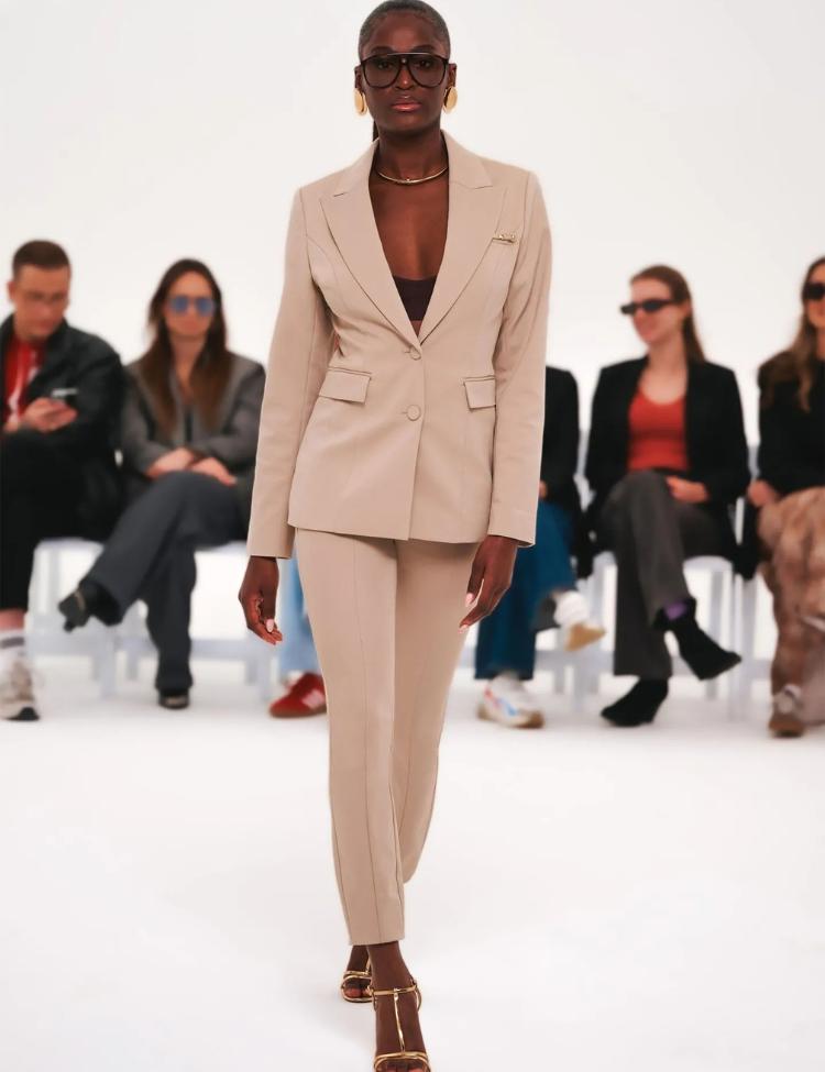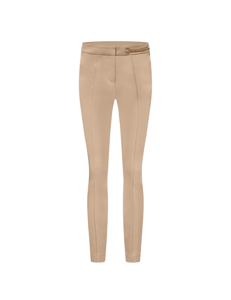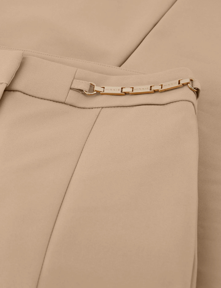 De Nikkie Kallin Pants in de kleur Dust is jouw go-to broek voor een stijlvolle look met een edgy touch. De aangesloten pasvorm en flatterende naden zorgen voor een slank silhouet, terwijl het gouden kettinkje in de taille een opvallend detail toevoegt. Combineer ‘m met de bijpassende blazer voor een power suit, of draag ‘m casual chic met een top en sneakers.