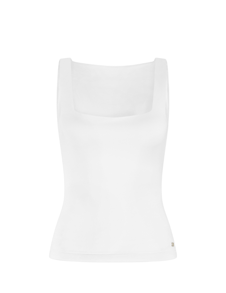 De Nikkie Kiara Top in Star White is een minimalistische essential met een vrouwelijke en flatterende pasvorm. De top is vervaardigd uit een stevige, comfortabele stretchstof die mooi aansluit op het lichaam en een gestroomlijnd silhouet creëert.
