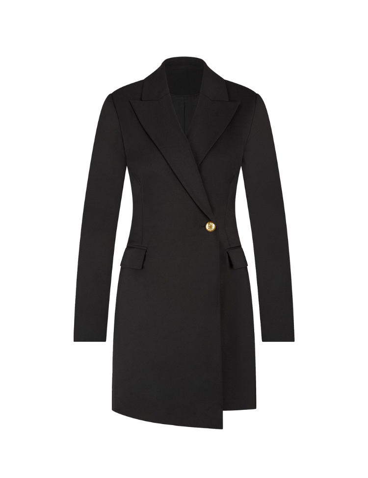 De Nikkie Lancastero Blazer Dress straalt kracht en elegantie uit. Met zijn getailleerde pasvorm en asymmetrische overslag creëert dit item een moderne, vrouwelijke look. De reverskraag en knoopsluiting geven de jurk een klassieke touch, terwijl de aansluitende fit zorgt voor een flatterend silhouet.